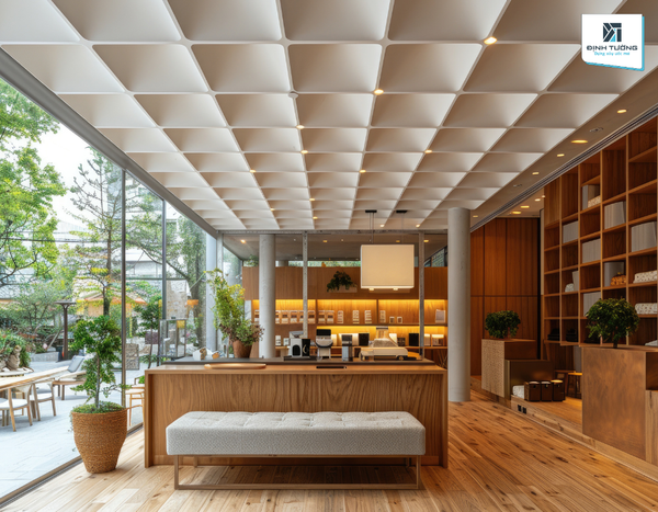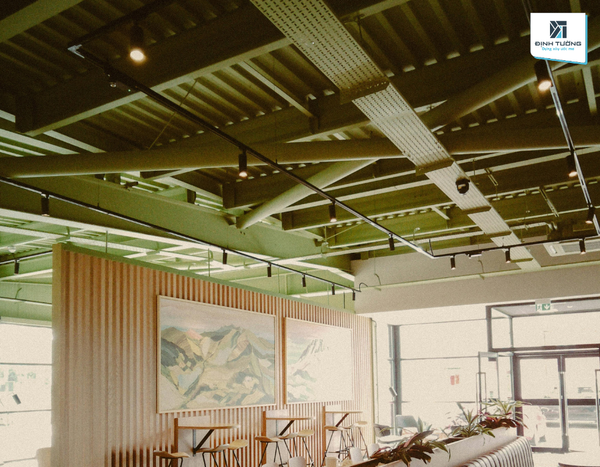 - Thể hiện phong cách thương hiệu: Mỗi phong cách thiết kế trần cafe thể hiện một câu chuyện riêng. Trần gỗ tự nhiên phù hợp concept xanh, trần công nghiệp phù hợp phong cách urban hiện đại.
