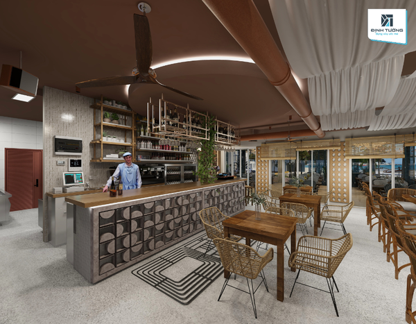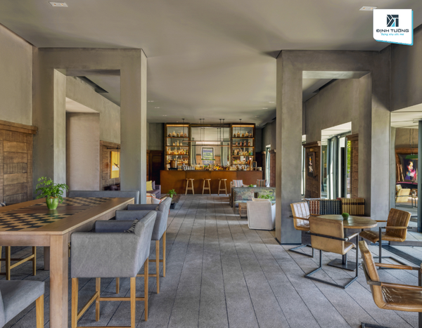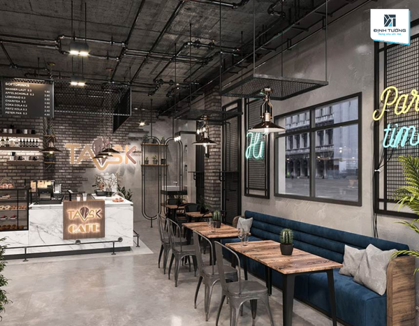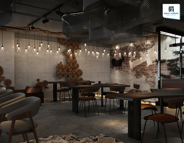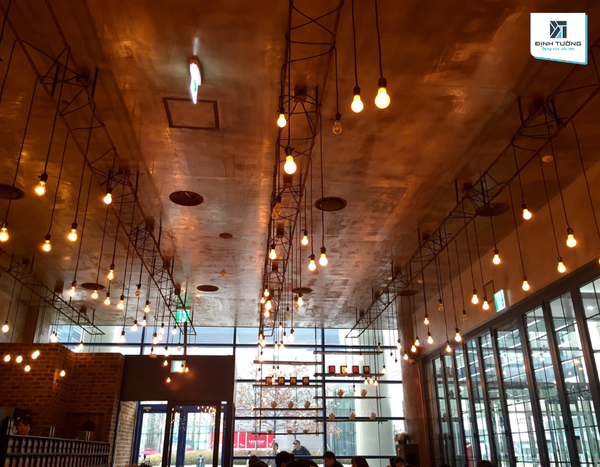 Trần bê tông là lựa chọn hàng đầu cho chủ quán yêu thích phong cách cá tính, mạnh mẽ