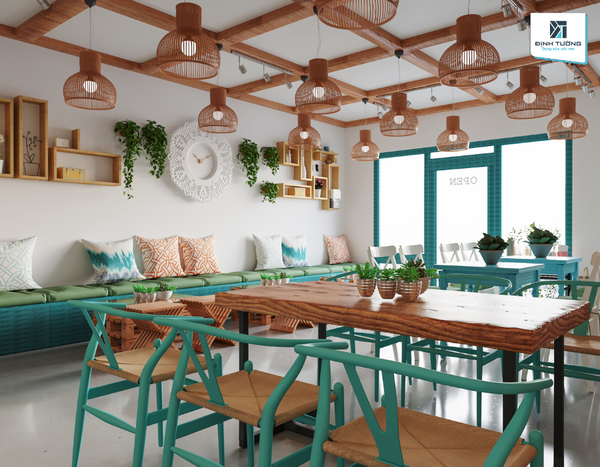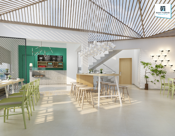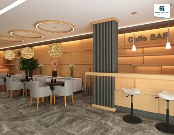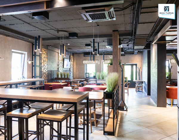 - Chiều cao trần phù hợp: Trần cao từ 3-4m tạo cảm giác thoáng đãng, phù hợp không gian lớn. Trần 2.6-3m mang lại sự ấm cúng cho quán nhỏ.