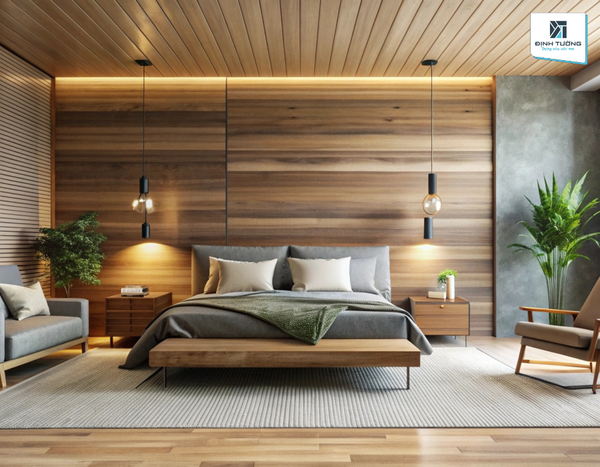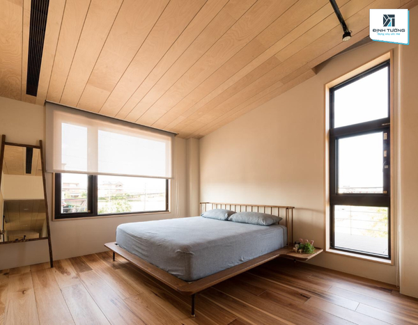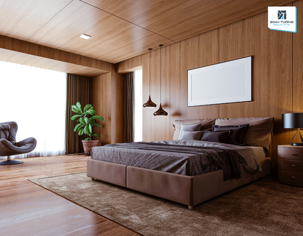 Ốp trần gỗ mang đến cảm giác ấm cúng cho phòng ngủ
