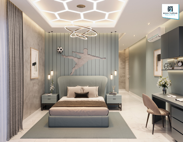 Mẫu trần phòng ngủ hiện đại cho gia chủ đam mê bóng đá