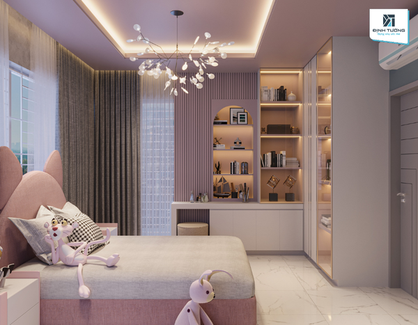 Mẫu trần phòng ngủ màu hồng nhẹ nhàng, nữ tính, phong cách hiện đại