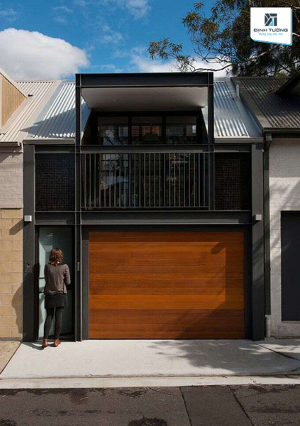 Mẫu nhà khung thép tối giản, ốp gỗ tạo điểm nhấn