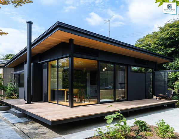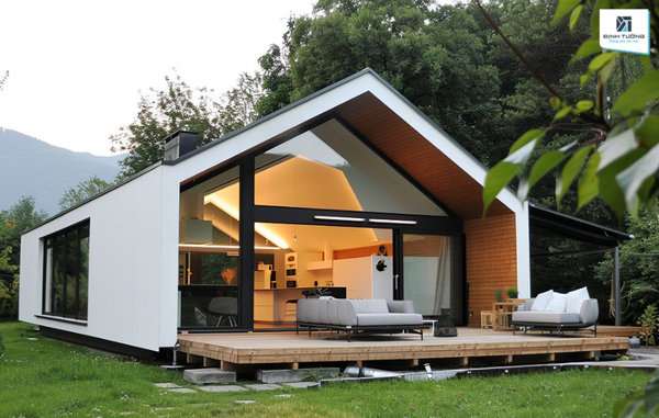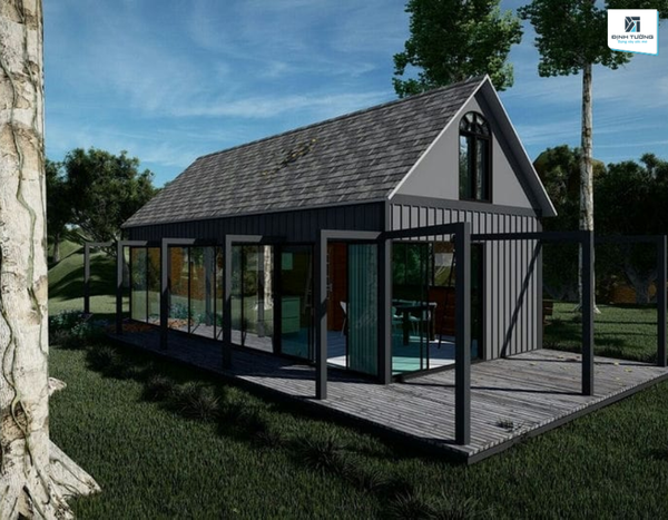 Mẫu nhà tiền chế mái Thái phong cách tối giản kết hợp cửa kính tạo cảm giác thoáng đãng cho không gian sống