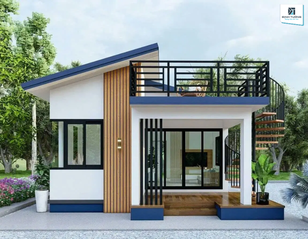 Mẫu nhà tiền chế cấp 4 mái lệch có sân thượng đẹp, độc đáo