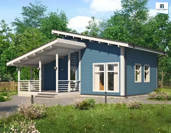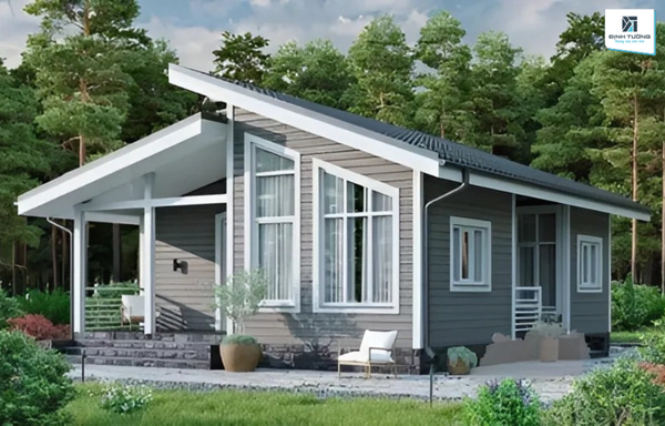 Mẫu nhà tiền chế cấp 4 mái lệch đơn giản, mang phong cách châu Âu hiện đại