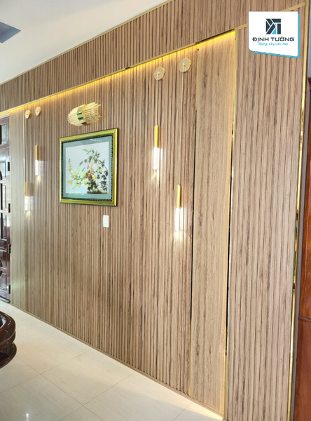 Phòng khách ốp nhựa Nano vân gỗ ấm cúng