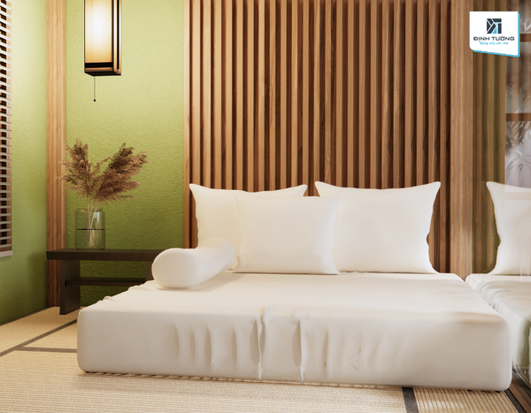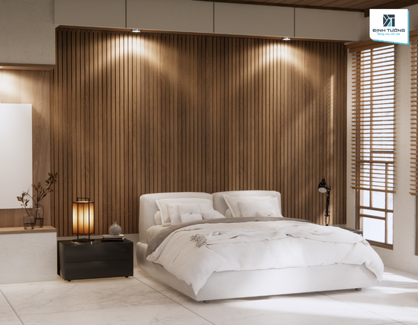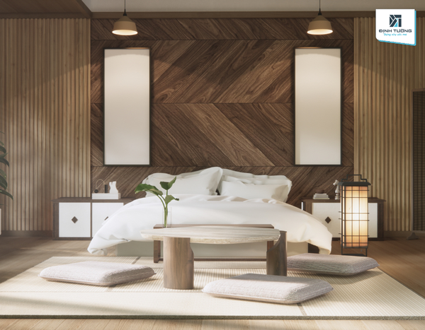 Mẫu phòng ngủ ốp tấm nhựa vân gỗ phong cách Nhật Bản