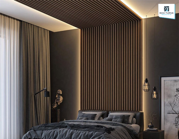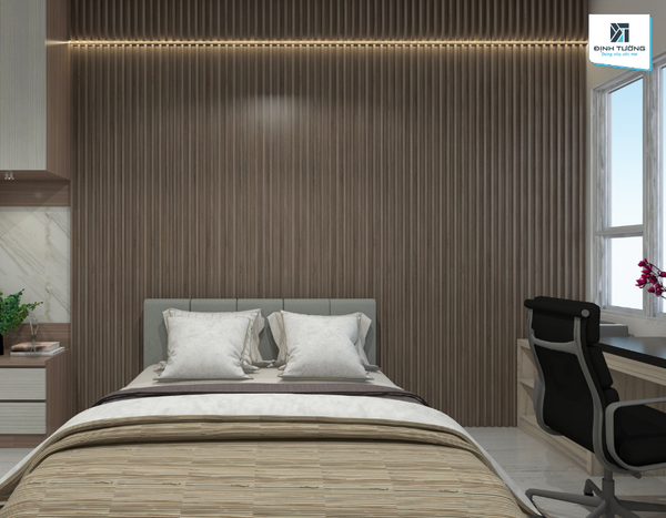 Phòng ngủ ốp nhựa vân gỗ màu nâu dịu mắt