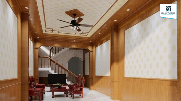 Mẫu phòng khách ốp nhựa phù hợp cho nhà nông thôn, nhà phố, biệt thự,...