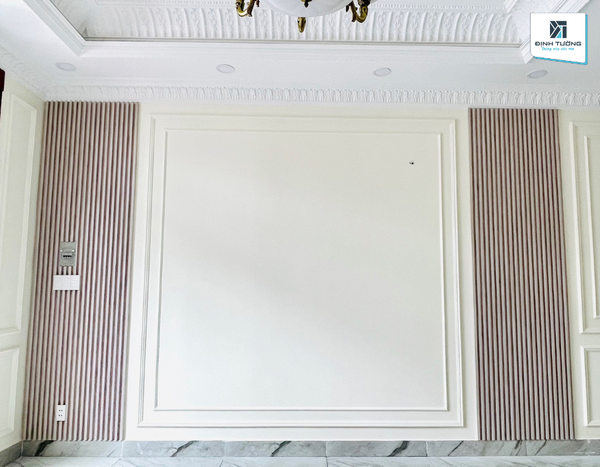 - Phong cách cổ điển, sang trọng: Ưu tiên tấm ốp vân gỗ tối màu như óc chó, gỗ tự nhiên hoặc vân đá marble, tạo cảm giác ấm cúng, sang trọng.