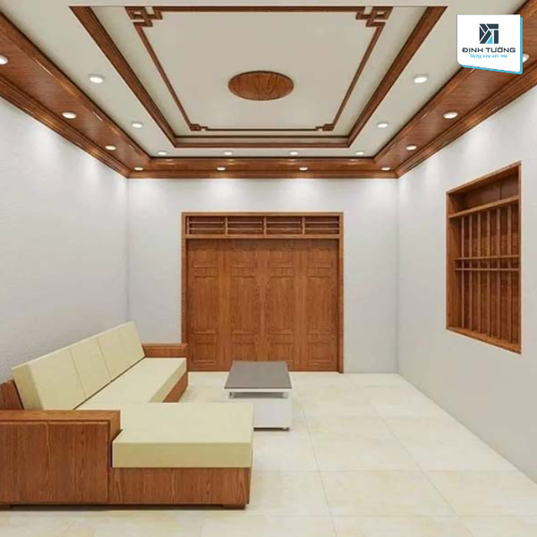 Trần nhựa Nano giật cấp trang trọng cho phòng khách
