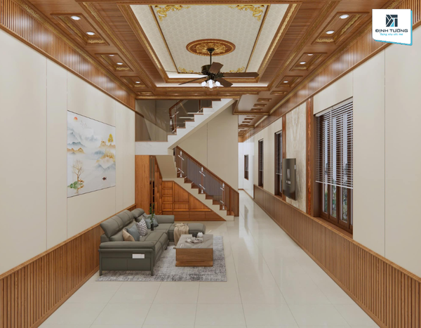 Thiết kế phòng khách phòng cách cổ điển kết hợp nội thất bằng gỗ