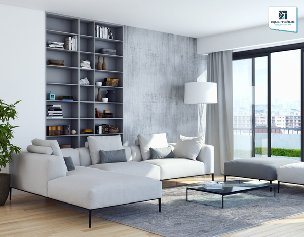 Ốp tường phòng khách vân xi măng tạo cảm giác mạnh mẽ, cá tính