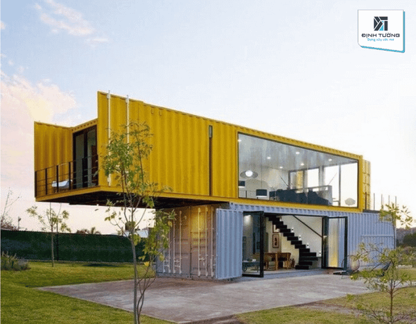 Mẫu nhà container 2 tầng hiện đại với cửa kính lớn
