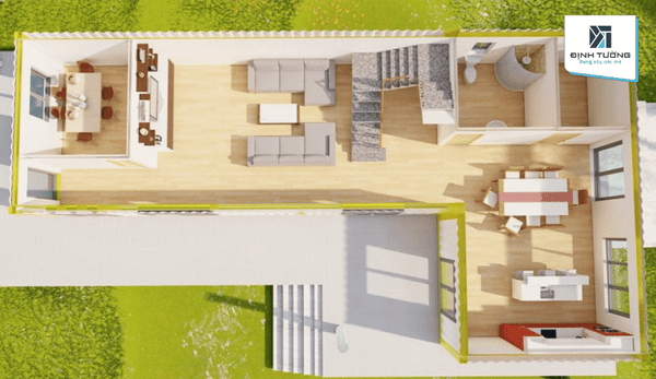 Mẫu nhà ghép 2 container phân chia không gian sinh hoạt hiệu quả