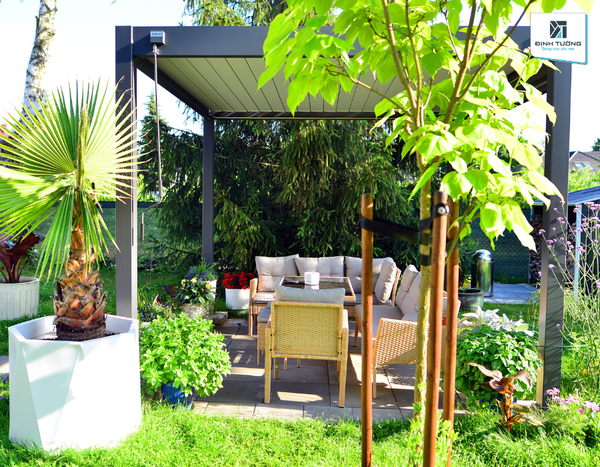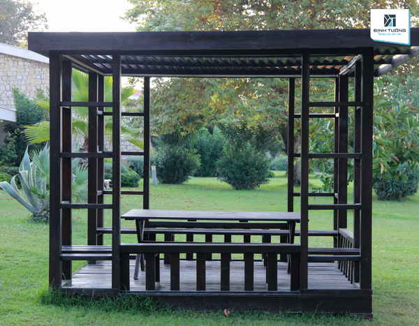 - Thẩm mỹ và phong cách: Vật liệu làm chòi sân vườn phải hài hòa với tổng thể kiến trúc nhà ở và cảnh quan sân vườn, tạo nên sự thư thái, gần gũi với thiên nhiên.