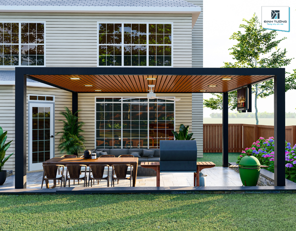 - Chọn vật liệu theo ngân sách đầu tư: Với những gia chủ muốn tiết kiệm chi phí thì tre, nứa,.. sẽ là lựa chọn lý tưởng, tuy nhiên vật liệu này có tuổi thọ thấp, chỉ phù hợp nhu cầu tạm thời. Khung thép mạ kẽm, tấm xi măng, thanh xi măng giả gỗ là giải pháp cân bằng giữa độ bền và chi phí, là lựa chọn phổ biến nhất hiện nay. Các loại gỗ tự nhiên sẽ có chi phí cao nhưng đảm bảo độ bền và tính thẩm mỹ qua thời gian.
