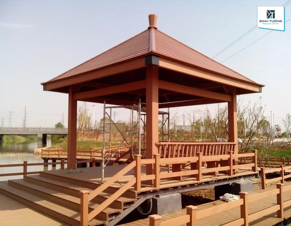 Thanh xi măng giả gỗ là sự kết hợp hoàn hảo giữa độ bền của xi măng và vẻ đẹp của gỗ tự nhiên. Đây là loại vật liệu xây nhà chòi sân vườn đang rất được ưa chuộng trong những năm gần đây, mang lại nét đẹp sang trọng cho công trình.