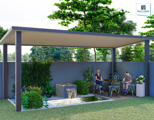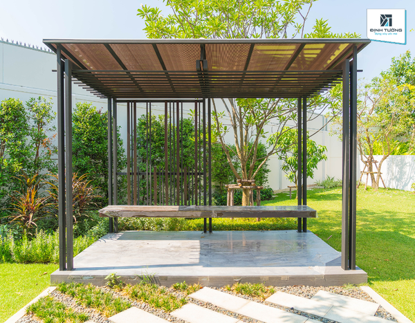 Nhà chòi sân vườn khung thép mang phong cách dơn giản, hiện đại