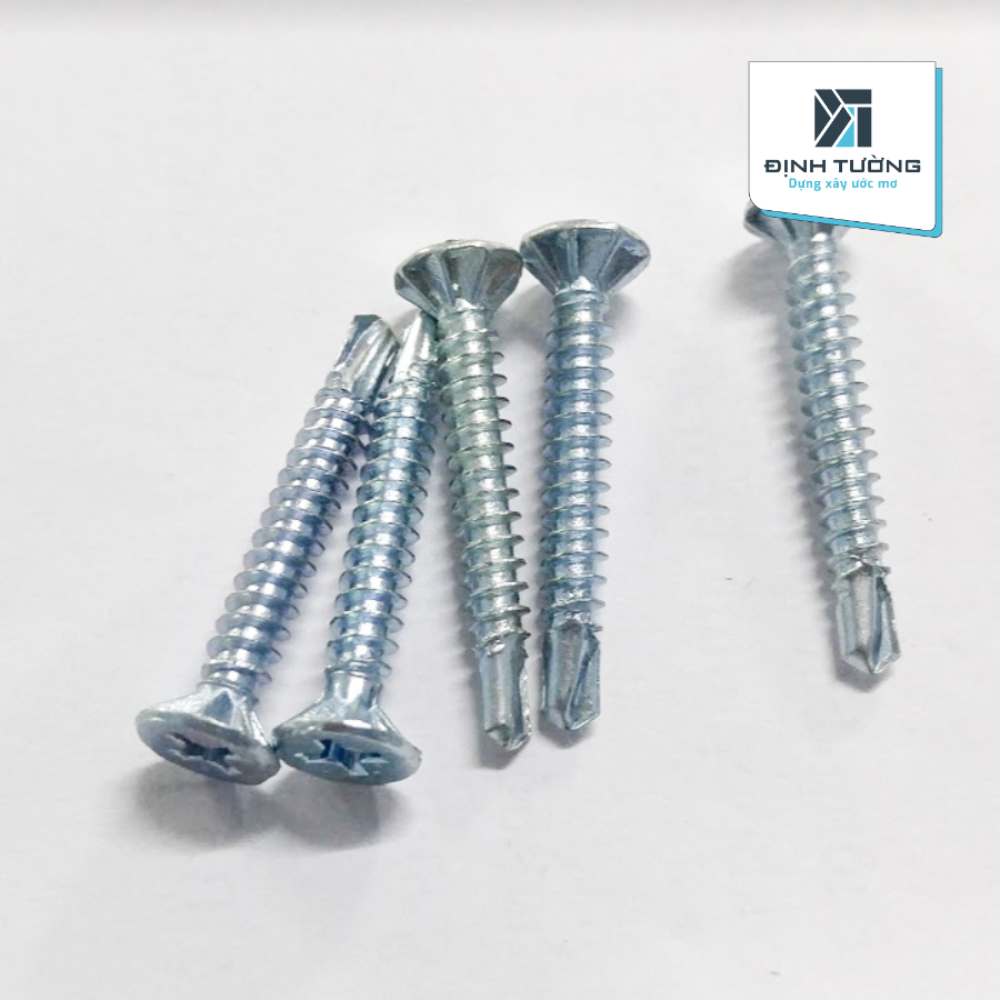 - Phần đầu vít: Được thiết kế dưới dạng hình tứ giác, đầu tròn với đường kính khoảng 0.5mm, dưới đầu có gờ theo đường chéo, tạo độ bám, chắc chắn khi bắn xà gồ, bắn khung.
